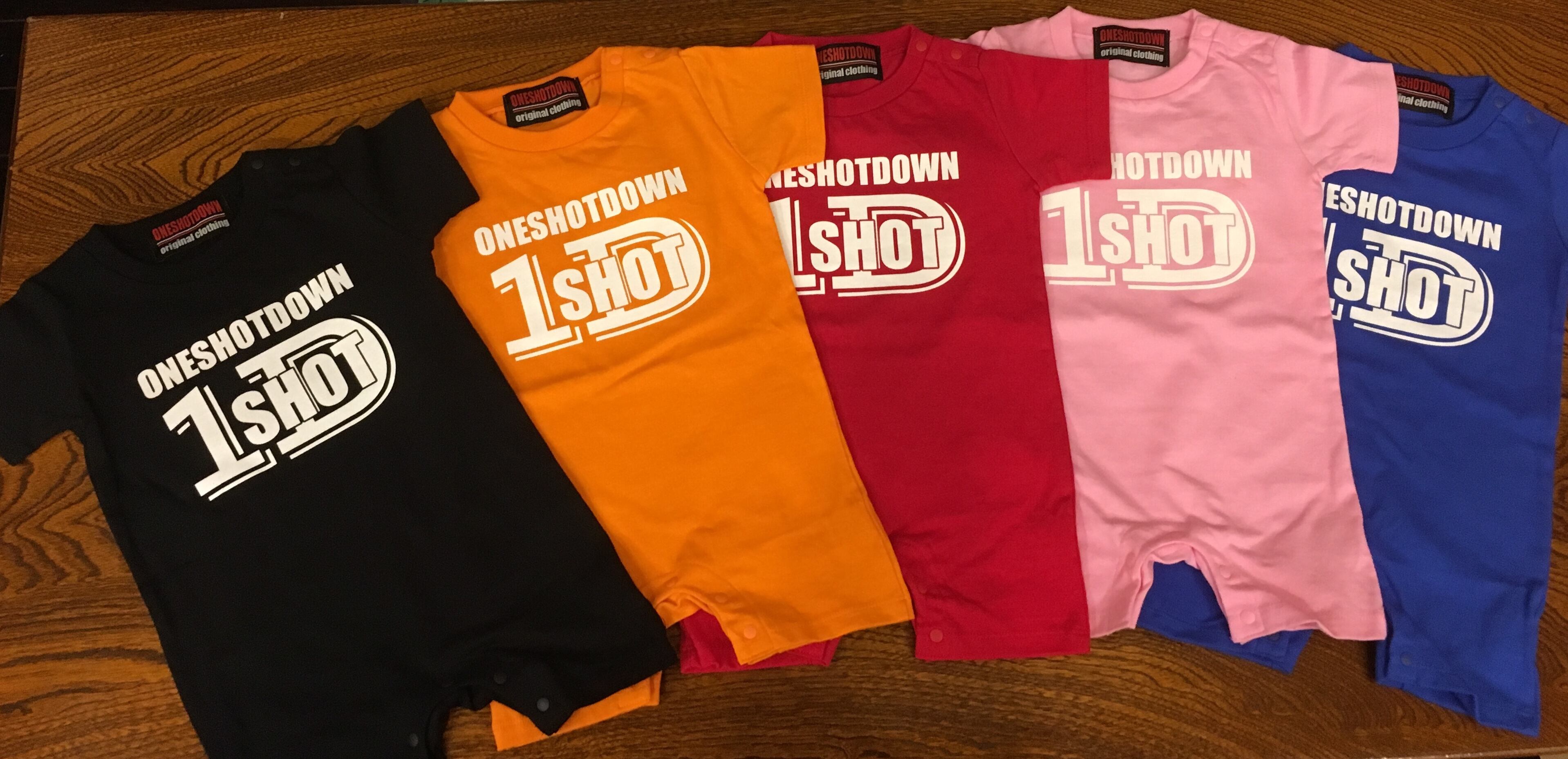 コットン100%着心地の良さ抜群 家族皆んなでONESHOTDOWN を楽しんで下さい 5.6オンス ベイビーロンパース 素材:綿100% カラー ピンク×ホワイト レッド×ホワイト ブルー×ホワイト ブラック×ホワイト オレンジ×ホワイト サイズ(㎝) 80㎝ 着丈48身幅29肩幅23袖丈10